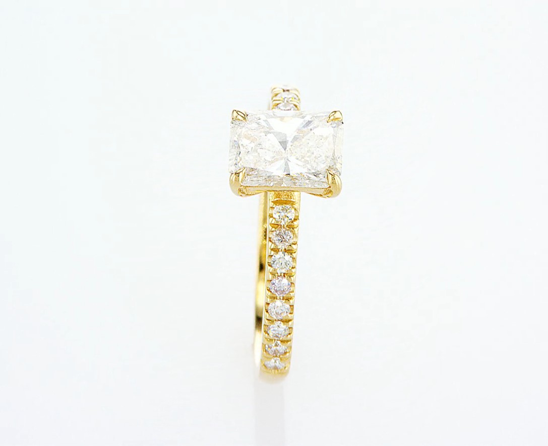 העניקי לעצמך מראה מרהיב עם טבעת האירוסין המרהיבה הזו, העשויה מזהב לבן מבריק. במרכזה יהלום עגול ומרשים, המוקף בהילה כפולה של יהלומים קטנים שמעצימים את הברק והזוהר שלה. עיצוב ה"שאנק" המפוצל מעוטר ביהלומים משובצים בפאווה, שמוסיפים נגיעה של אלגנטיות ומבטיחים זוהר מכל זווית. טבעת מושלמת לאירוסין, ימי נישואין או רגעים מיוחדים, המסמלת אהבה נצחית ואלגנטיות על-זמנית.